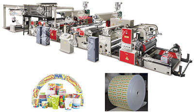 SJFM型雙主機擠出淋膜復合機組,吸收國外先進技術,是目前國內一次完成雙面淋膜工藝的先進機種,設備用于需要一次生產完成的雙面涂塑紙,或多層的如牛奶盒、果汁盒、飲料盒等復合材料